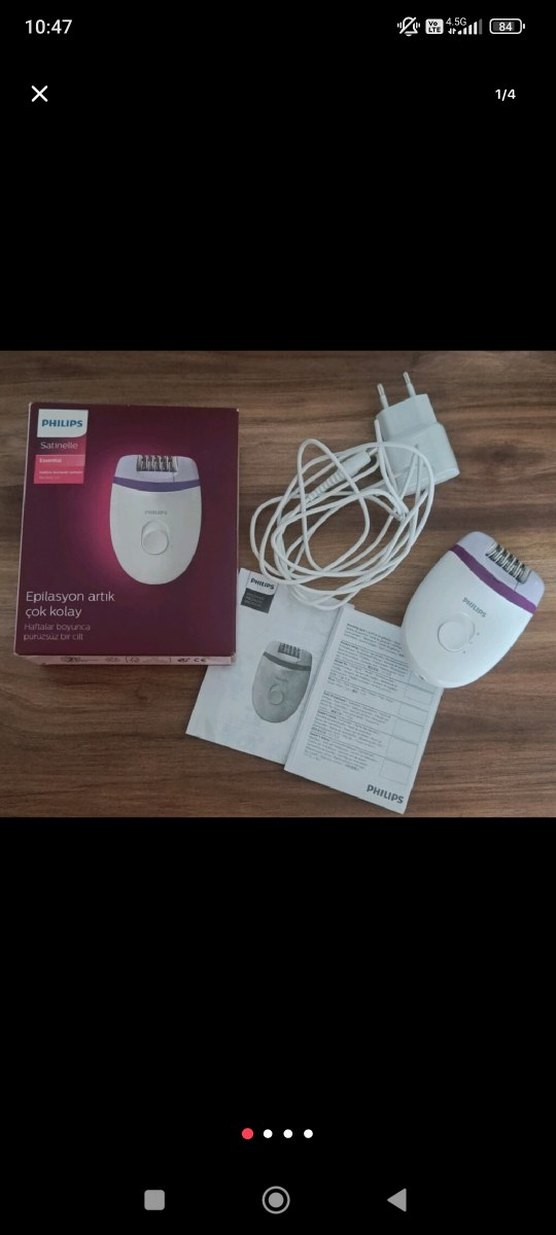 Mor renk Philips Satinelle epilatör, kolay kullanım ve etkili epilasyon sağlar. Şarj cihazı ve kullanım kılavuzu ile birlikte. Normalde sıfır ürün paketindeydi küçük oğlum paketi yırttı sadece. Bir defa bacakta denemek için kullanıldı lazere başladığım için satıyorum. Sterilize edilip gönderilicektir.