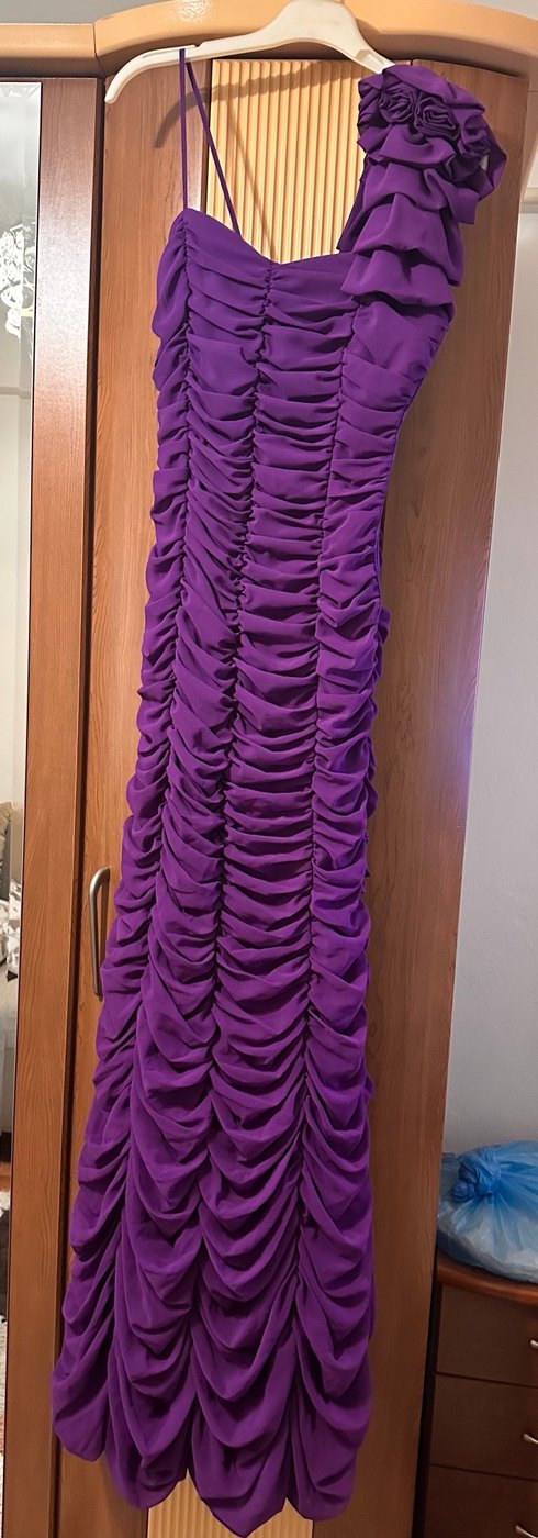 Mor Pilili Uzun Tek Omuz Elbise