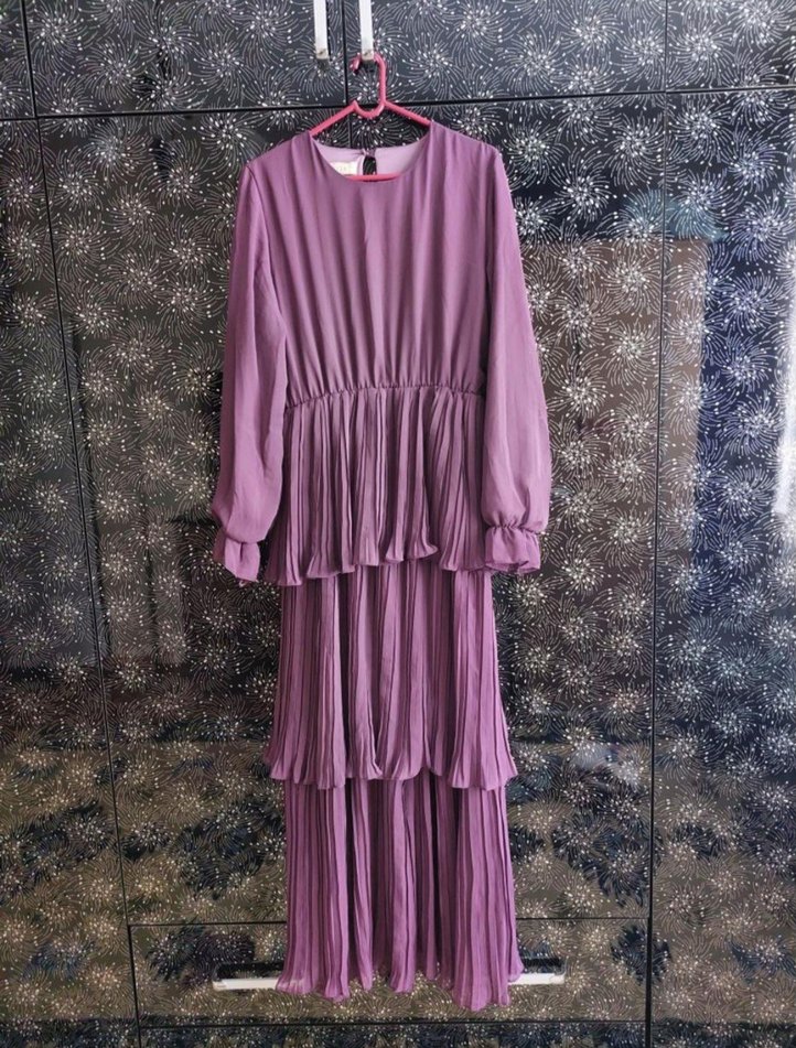 Mor Piliseli Uzun Elbise