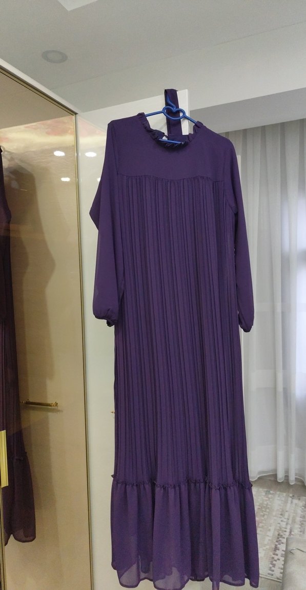Mor Piliseli Uzun Kollu Uzun Elbise