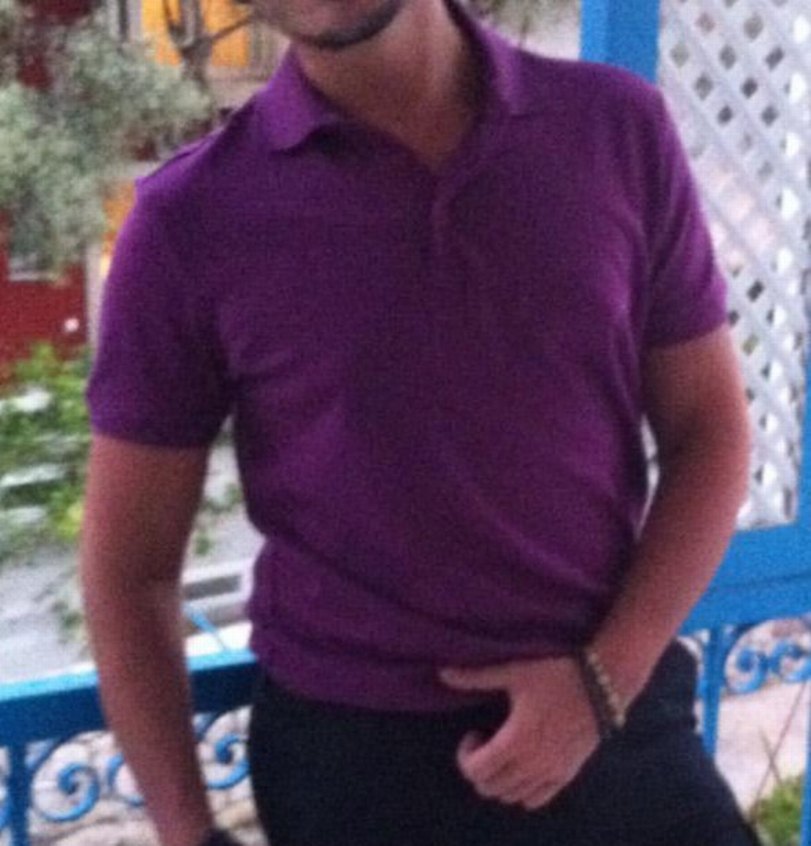 Mor, yakalı ve kısa kollu, vücuda oturan erkek polo tişörtü. Pürüzsüz sentetik kumaştan, günlük rahat stil için uygun.