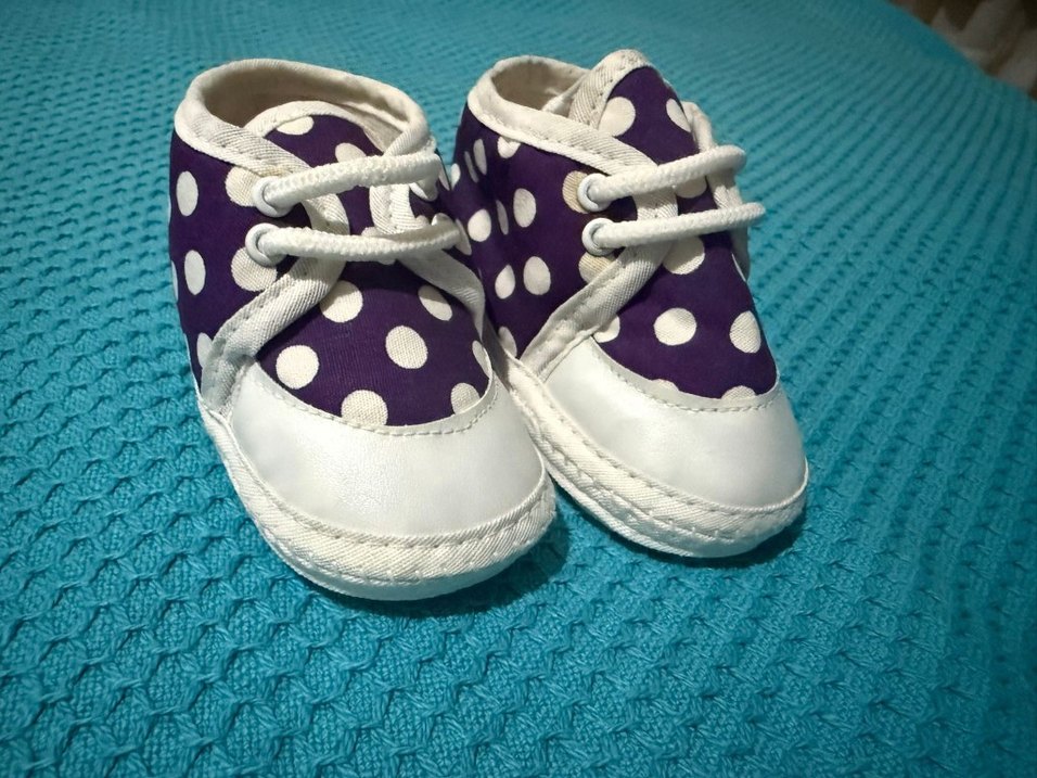 Mor Puantiyeli Erkek Bebek İlk Adım Ayakkabısı