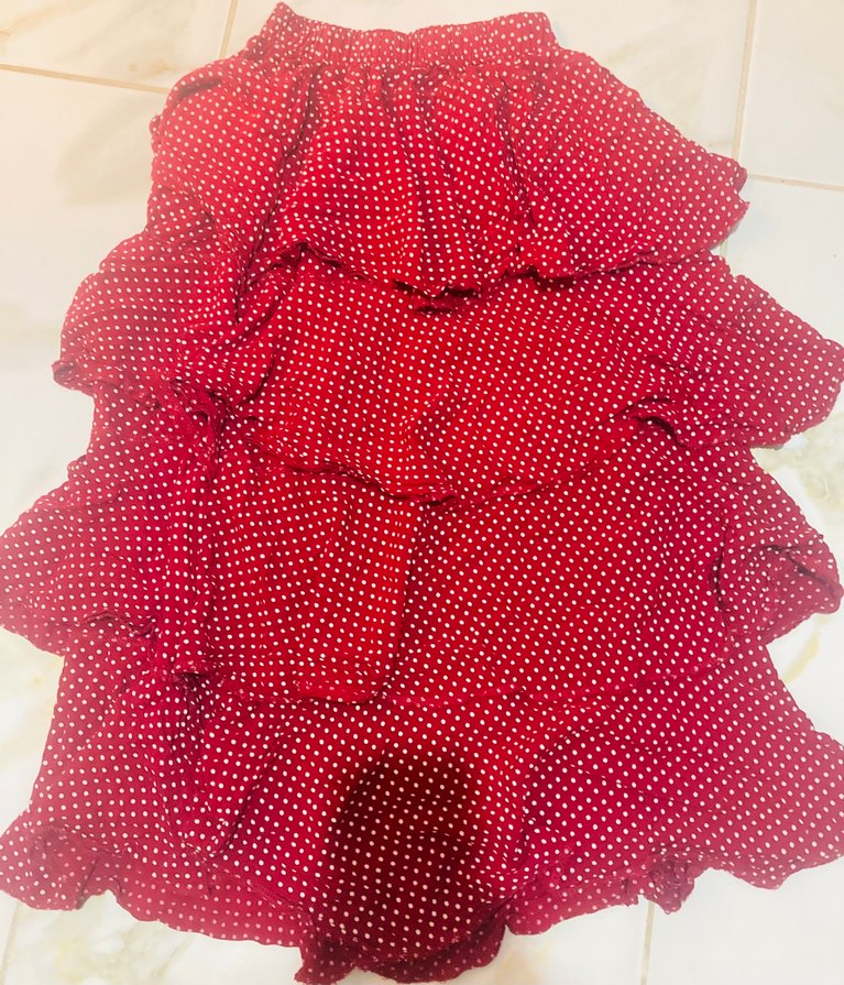 Mor Puantiyeli Uzun Fırfırlı Etek