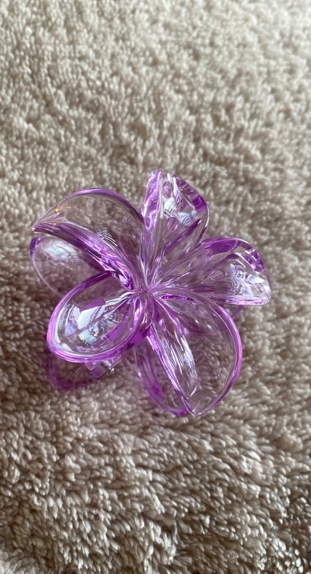 Mor renkte, pul detaylı plastik çiçek şeklinde saç tokası. Goth ve bohem tarzlara uygun.
