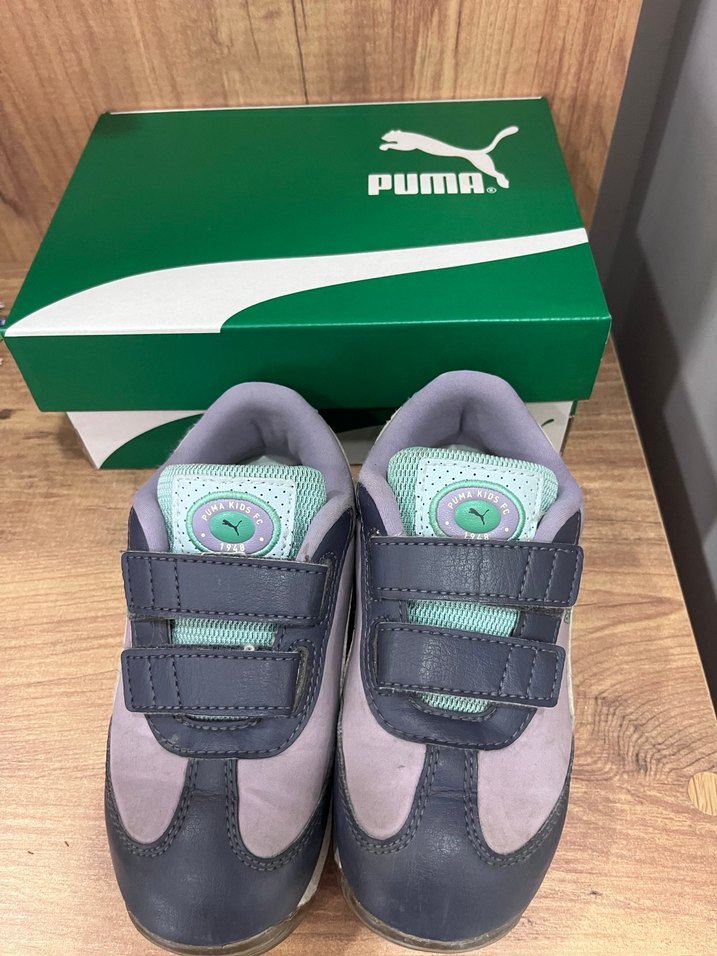 Mor renkli Puma kız çocuk spor ayakkabısı, baskılı desene ve cırt cırtlı kapanışa sahiptir. Kauçuk tabanlı, rahat sokak stiline uygun bir modeldir.