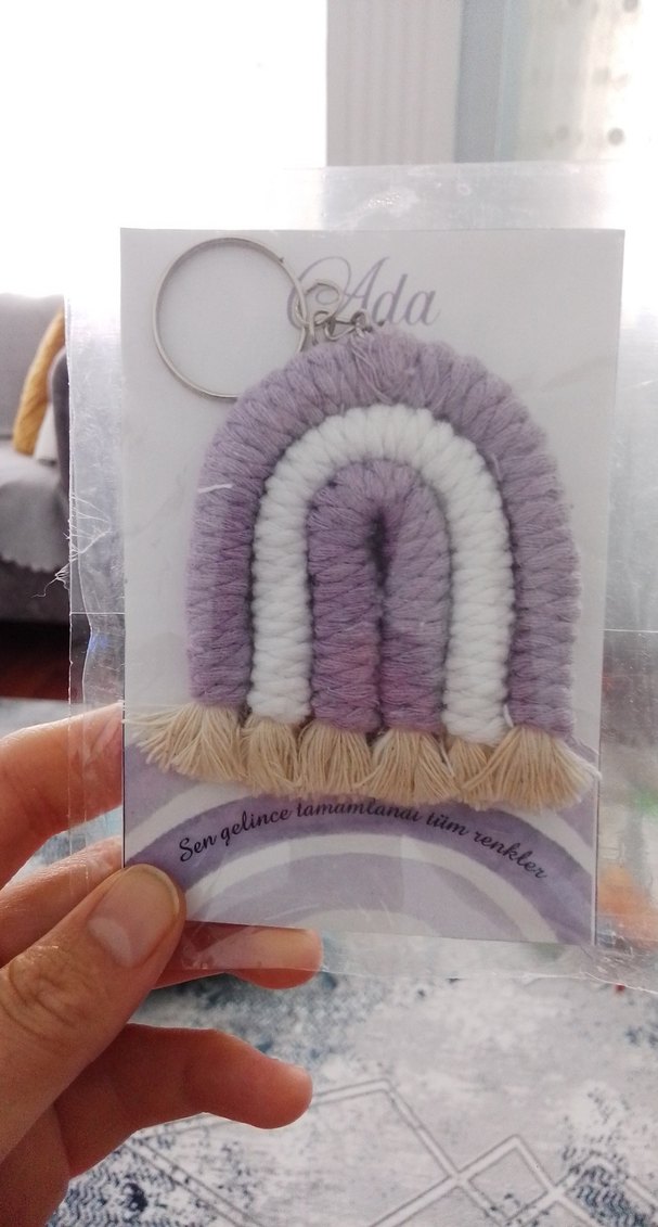 Pastel mor renkte, yumuşak püsküllü bohem tarzında, anahtarlarınıza sıcak ve retro bir dokunuş katan anahtarlık. yeni doğan bebek için doğum günleri için mevlütler için toplu sipariş alınır adet fiyatı 30 TL'dir