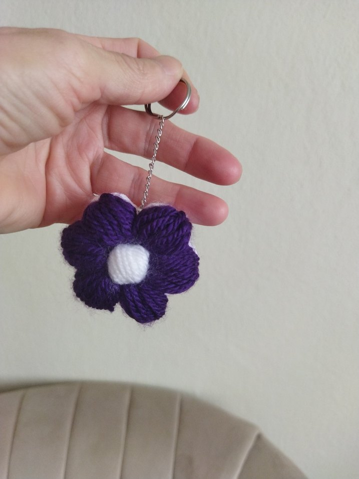 Mor renkli, püsküllü, çiçek şeklinde bohem tarzı kadın anahtarlık. Minimalist ve retro tasarım. ️
