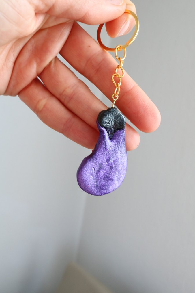 Koyu mor renkli, püsküllü ve gotik tarzda minimalist anahtarlık. Altın renkli halka ile asılır.