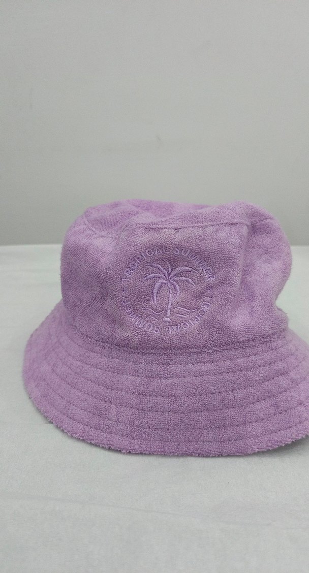 Yumuşak mor tonlarında, nakışlı palmiye deseni ve püskül detaylı kova şapka. Bohem ve retro tarzı yansıtan rahat kumaşlı şapka.