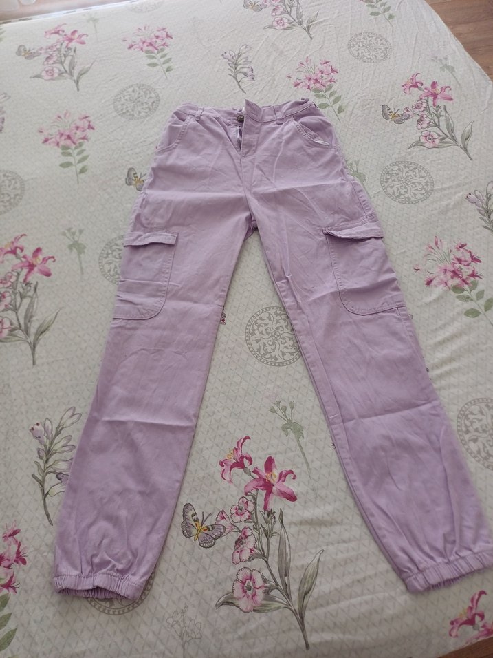 Mor Rahat Kesim Düğmeli Pamuk Pantolon