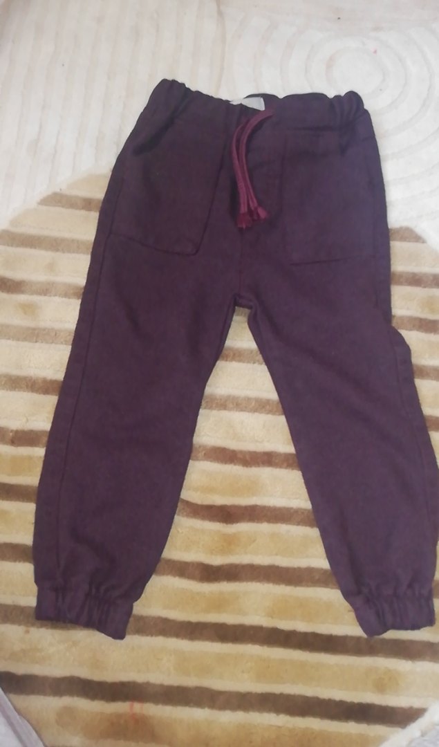 Mürdün renkli, rahat kesim erkek çocuk pantolonları, yumuşak ve sıcak kumaş, lastikli bel ve ceplerle günlük sokak stili için uygun.