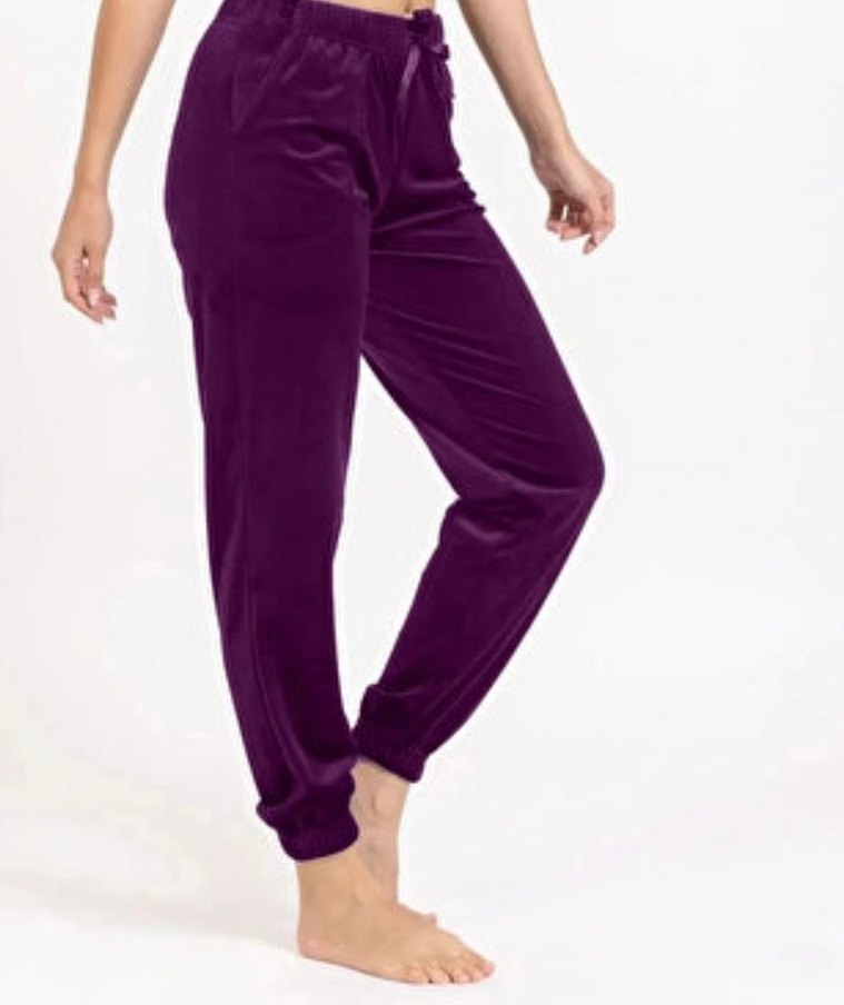 Mor renkli, kadife rahat kesim kadın eşofman altı, orta boy ve yumuşak, sıcak kumaştan üretilmiştir . Spor ve sokak giyimi için uygundur. ♀️3 renk vardır sM ve -L beden