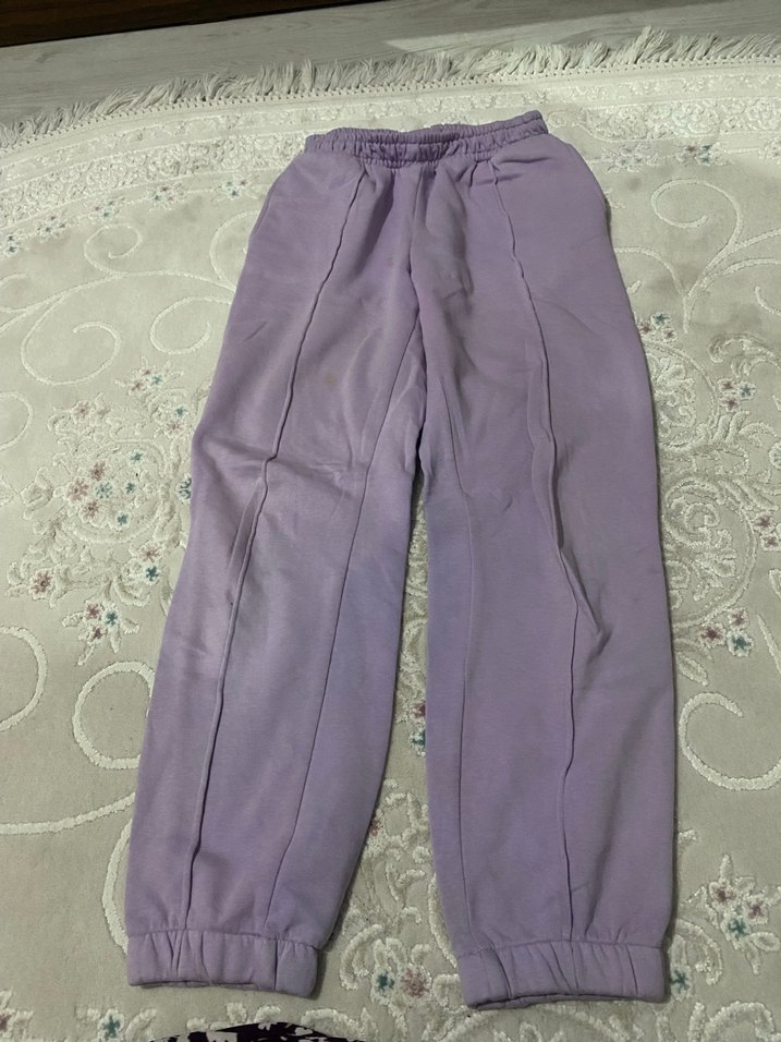 Mor renk, rahat kesim ve normal boyda, elastik bilek detaylı kadın eşofman altı. Yumuşak sentetik kumaştan üretilmiş, trend günlük stil için ideal.