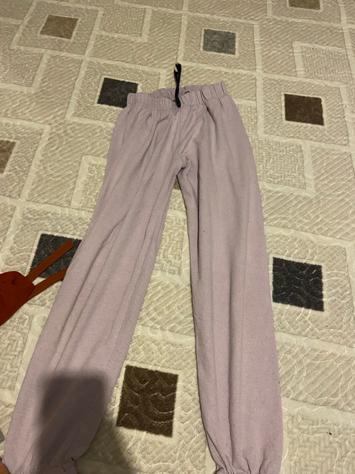 Mor renkte, bol kesim ve midi boyda, rahat sentetik kumaştan kadın eşofman altı. Günlük sokak stiline uygun, zahmetsiz şıklık sunar.