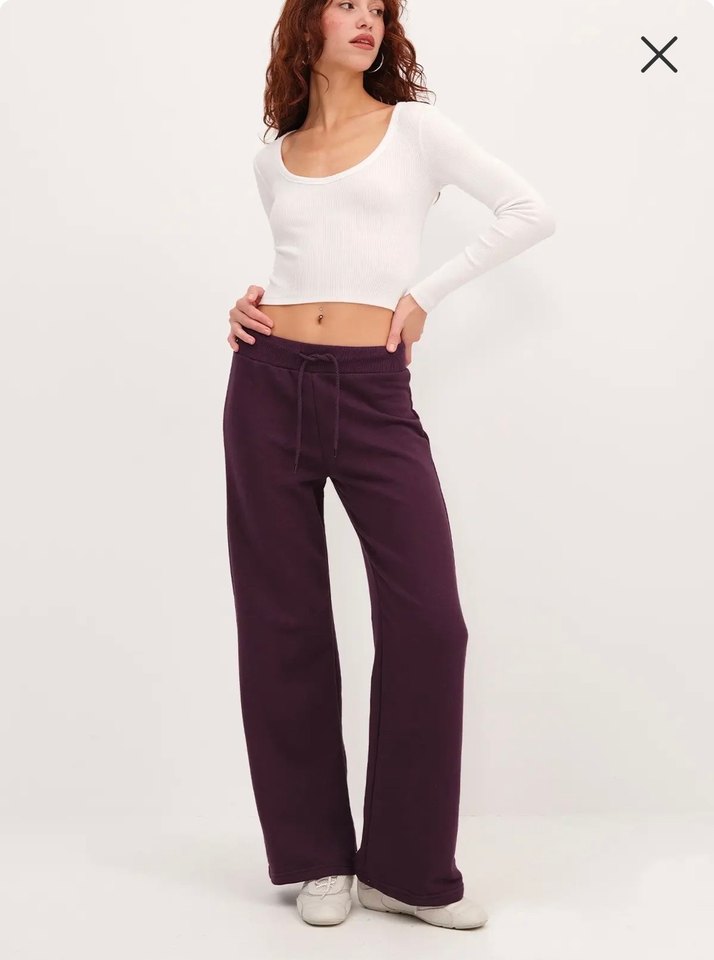 Mor renkli, bol kesim kadın kumaş pantolon. Orta boy uzunlukta ve yumuşak, sıcak bir kumaştan üretilmiştir. Günlük kullanım için rahat ve şık bir seçim. Işıkta ki rengi ilk fotoğraftır.