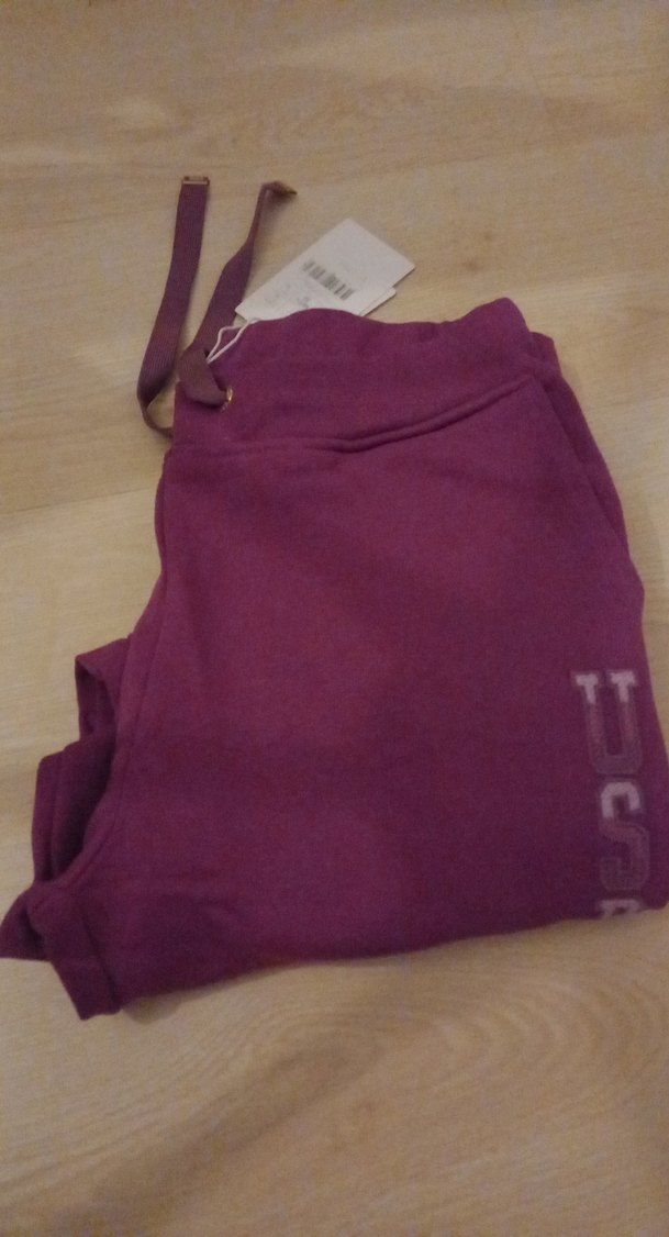 Yumuşak ve sıcak kumaştan, rahat kesim mor midi eşofman. Bağcıklı bel ve ince 'USA' baskısı bulunur, gündelik sokak tarzına uygundur.