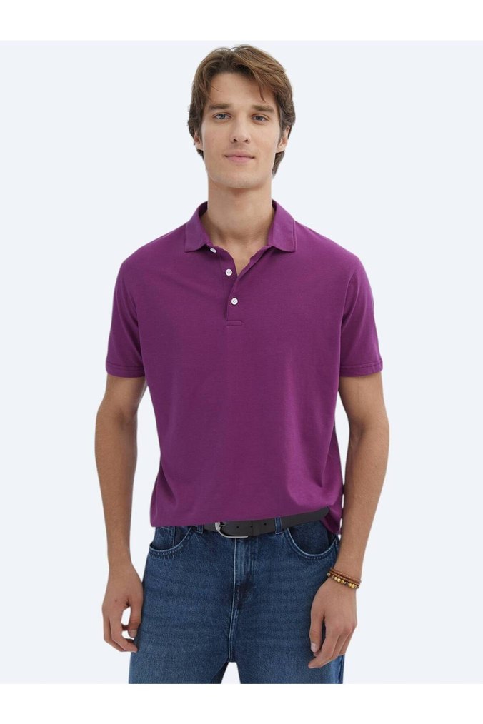 Mor Regular Fit Kısa Kollu Polo Tişört