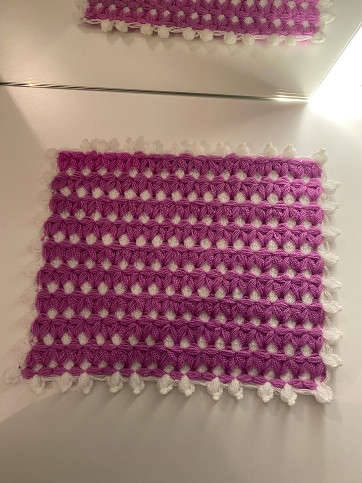 Mor renkte, beyaz detaylı renkli banyo süngeri, nazikçe peeling yapar.