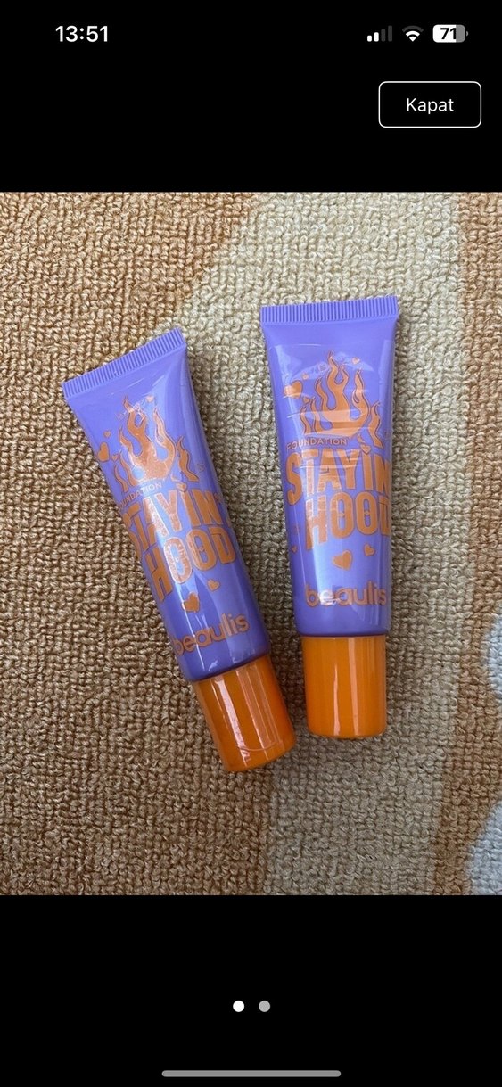Canlı mor renkte, turuncu kapaklı tüpte dudak parlatıcısı. Renkli parlaklık katar.