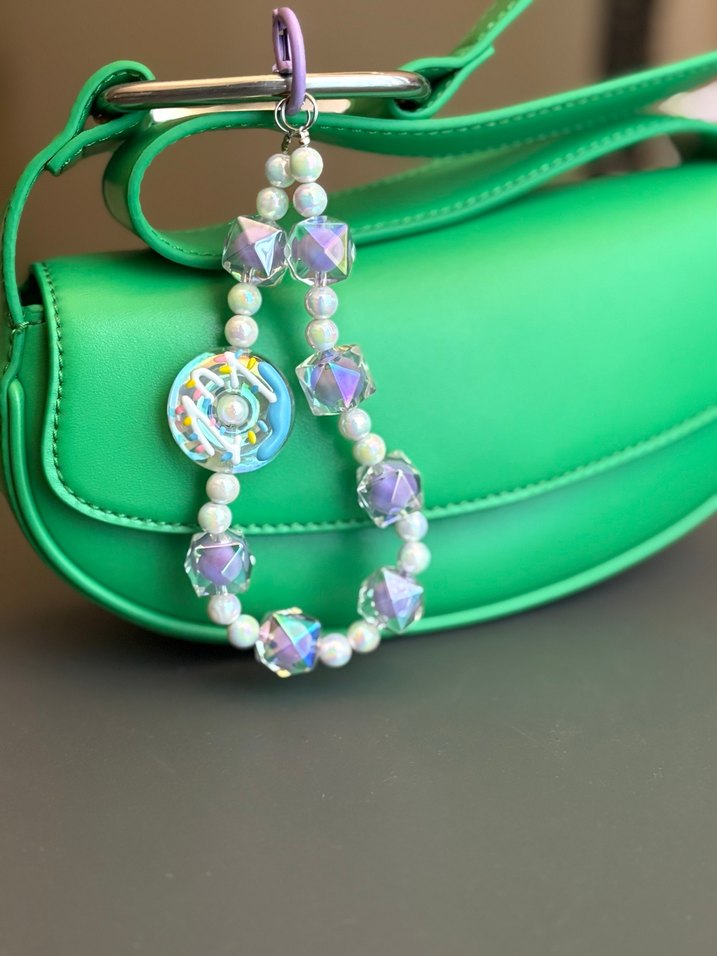 Mor renkli Dont şekilli Boncuklu Çanta Charm/ Telefon askılığı