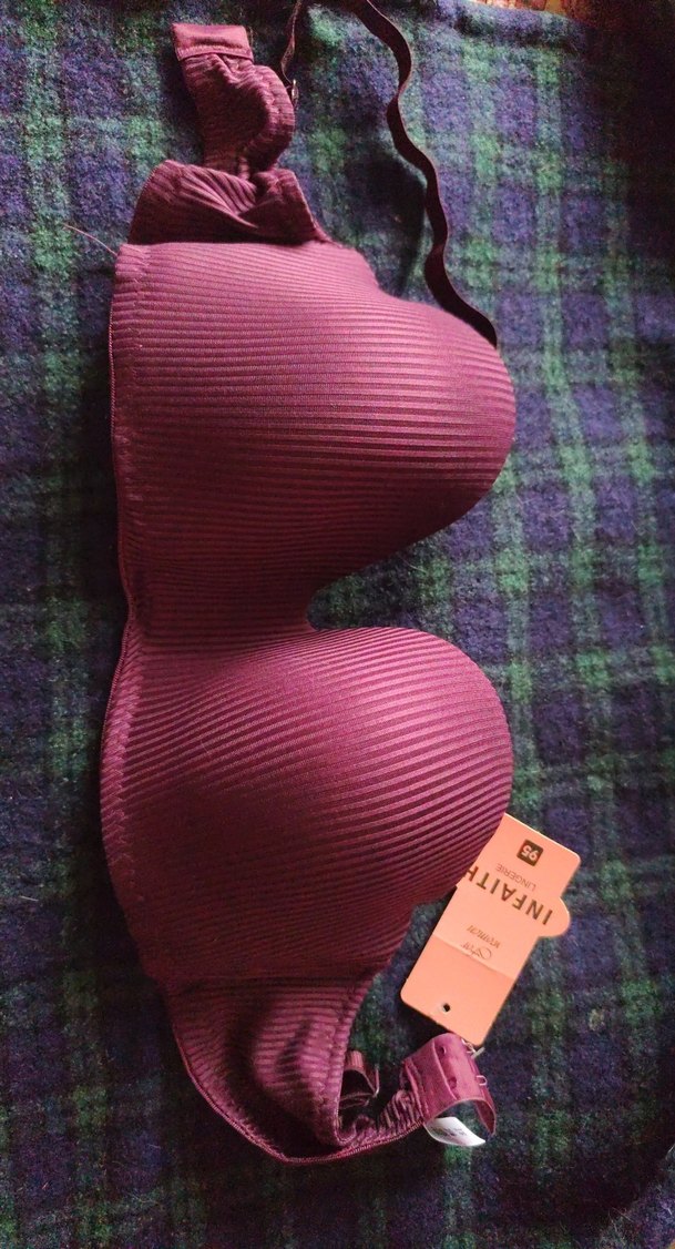 Bu koyu mor sütyen, düz dokulu ve rahat destek sunan konforlu bir tarza sahiptir. Normal uzunluktadır ve desensizdir. hiç kullanilmadi etiketi ustunde beden 95