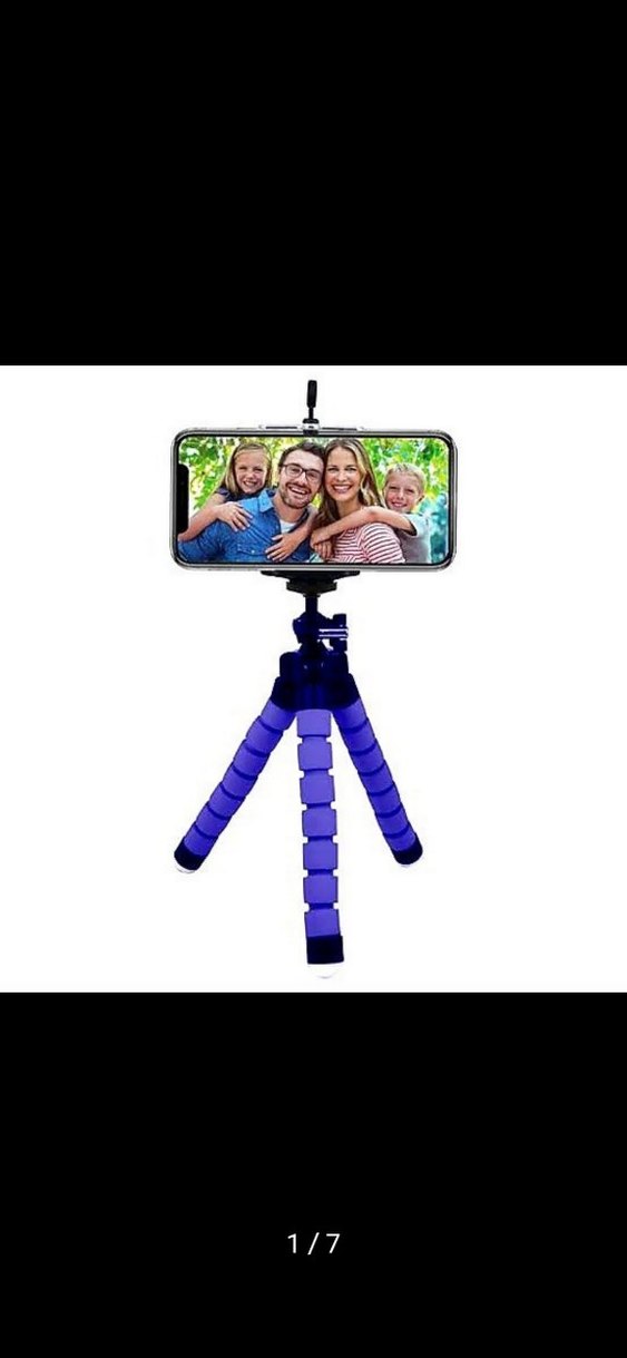 Mor renkli, esnek ayaklara sahip tripod ve telefon tutucu. Sabit ve farklı açılarda çekim yapmaya uygundur.