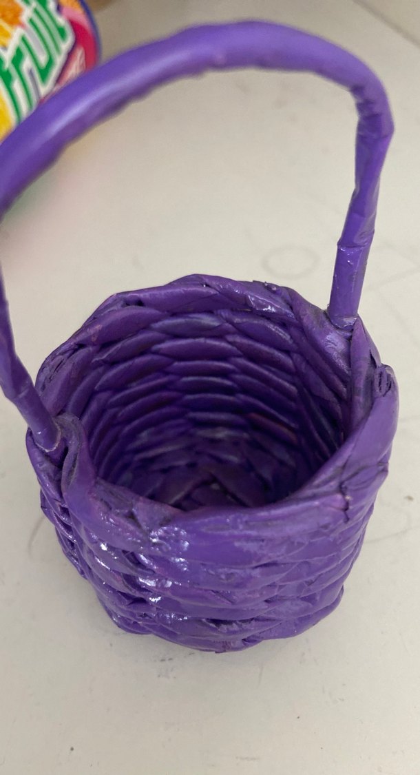 Canlı mor renkte, küçük eşyalar için uygun mini bir sepet