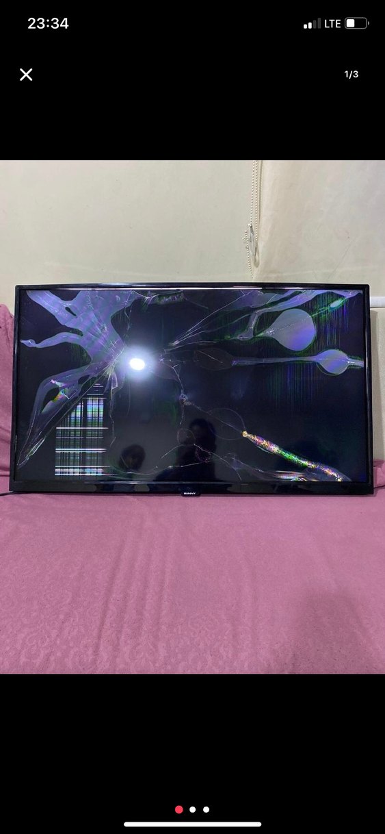 Ekranı ağır şekilde çatlamış ve renk bozulmaları olan mor renkli monitör. Görüntü kullanılamaz durumda. ️ Mor renkli kırık monitör sunny dal 39