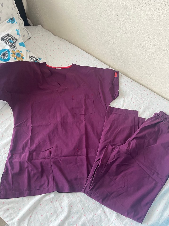 Mor renginde, kısa kollu, yuvarlak yakalı ve düz desenli bol kesim hemşire önlüğü.rahat kullanım sağlar. Mor Hastane Kıyafeti – Scrubs Takım Üst ve pantolon takım halinde satılıktır. Rahat kesim, lastikli pantolon. Cepli üst, hastane kullanımına uygundur. Az kullanılmış, temiz durumdadır. Yırtık, sökük, leke yoktur.