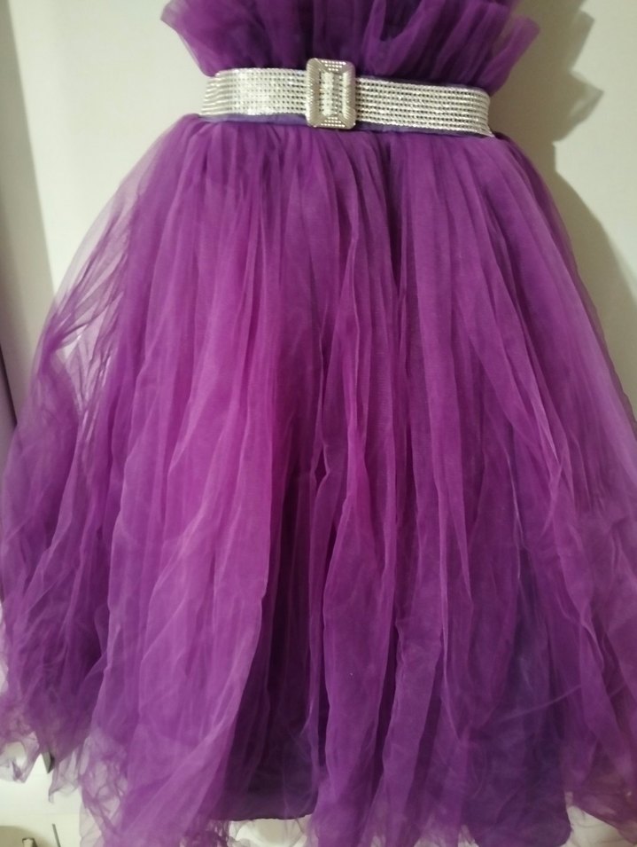 Mor Renkli Kız Çocuk Fırfırlı Etek abiye