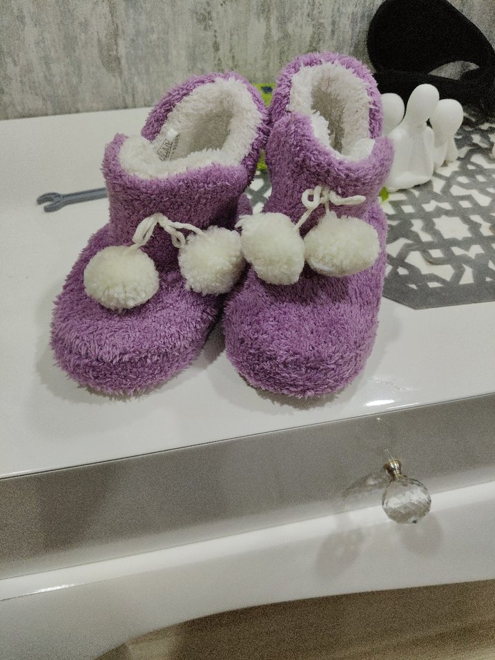 Mor Renkli Kız Çocuk Triko Sıcak Ev Terliği