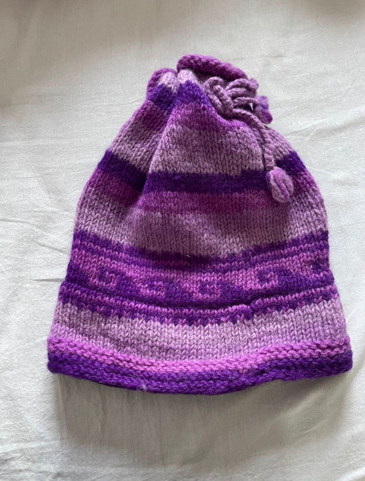 Yumuşak örgüden yapılmış, mor renkli, renkli ve bohem tarzda kadın bere. Rahat ve retro havasıyla hippie stilini tamamlar. #tasarım #moda #takip #büyükbeden #elbisemodelleri #elbise #abiye #moda #yenisezon #giyim # #bayangiyim #kombin #trend #bluz #indirim #pantolon #etek #tunik #moda #abiyeelbise #stil #sale #like #takip #tesetturgiyim #fashion #tarz #coton #pamuk #alışveriş #terzi #ayna #şık #Kadın #bayan #marka #yılbaşı #hediye