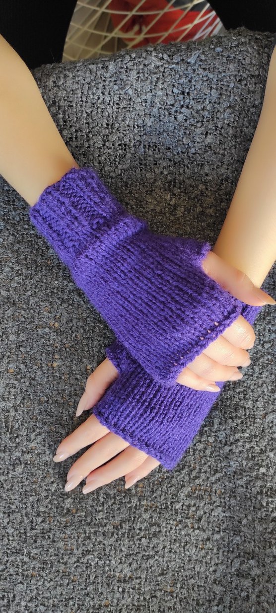 Mor Renkli Örgü Parmaksız Kadın Eldiveni