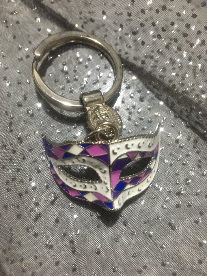 #Mor renkli, payetli maska tasarımlı renkli anahtarlık. Bohem ve retro tarzları sevenler için avant-garde bir parça #Anahtarlık #maske #yeni #orjinal #yurt dışından gelmiştir #hediyelik #kişiye özel