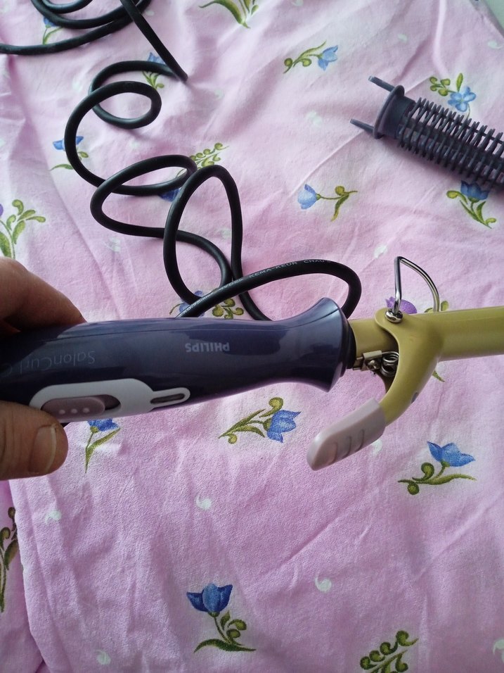 Philips marka mor renkli saç maşası, kelepçeli ve spiral kablolu tasarıma sahip. Saç şekillendirmeye uygundur. ♀️