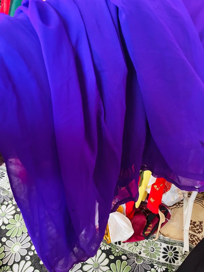 Drapeli tasarıma sahip, canlı mor renkte kadın şalı. İpek gibi yumuşak kumaştan, bohem ve retro tarzlara uygun.