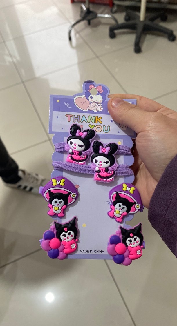 Mor renkli, rock punk desenli çocuk saç tokaları ve bantları, cırt cırtlı kapanışlıdır. Çin'de üretilmiştir.