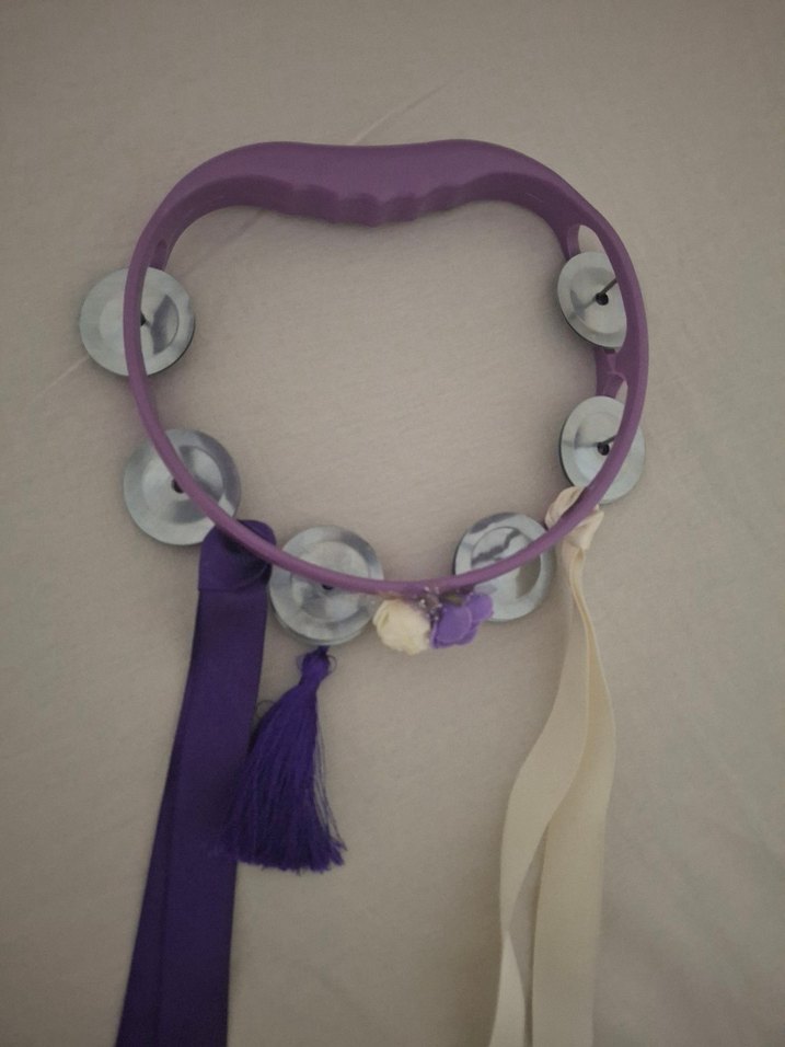 Mor renkli müzikli metal ziller ve dekoratif kurdelelerle ses ve eğlence sunar.