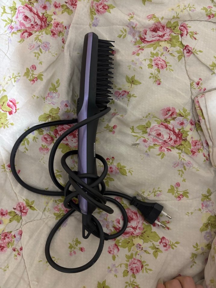 Mor renkli saç düzleştirici fırça, kolay şekillendirme için kıllara ve kullanışlı güç kablosuna sahiptir. Saçları düzleştirmek için uygundur.