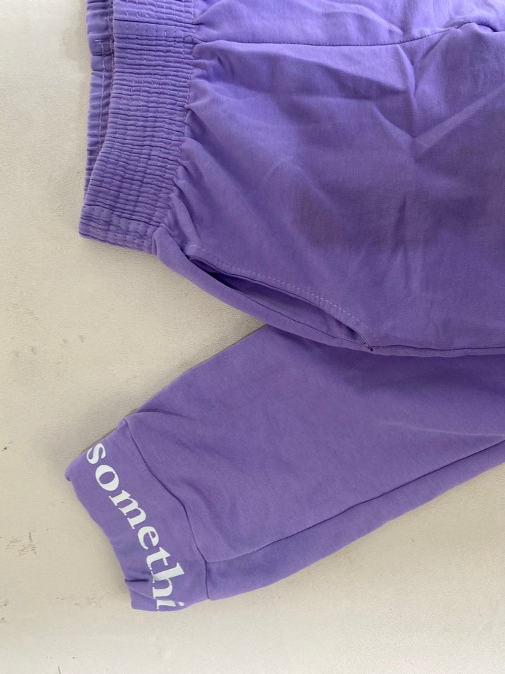 Yumuşak, sıcak kumaştan, elastik bel bantlı mor salaş eşofman altı, rahat günlük kullanım için uygun.