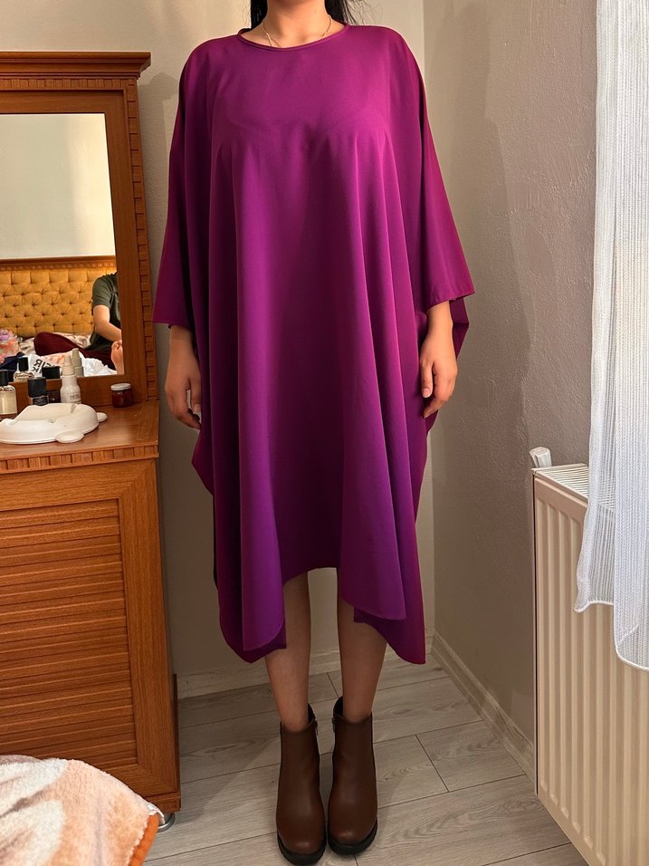 Salaş kesim, drapeli, kısa kollu tunik. Harika dokulu, parlak mor renkte ve midi boyda, günlük kullanıma uygun avant-garde tarzda. Çok az kıllanıldı tertemiz yep yeni