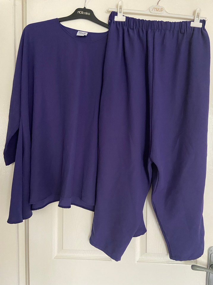 Mor renkte, salaş kesim tunik ve şalvarlı takımdır. İster ayrı ayrı kombinleyin ister beraber kombinleyin çok şık bir takım. Bir kaç kez giyilmiştir.