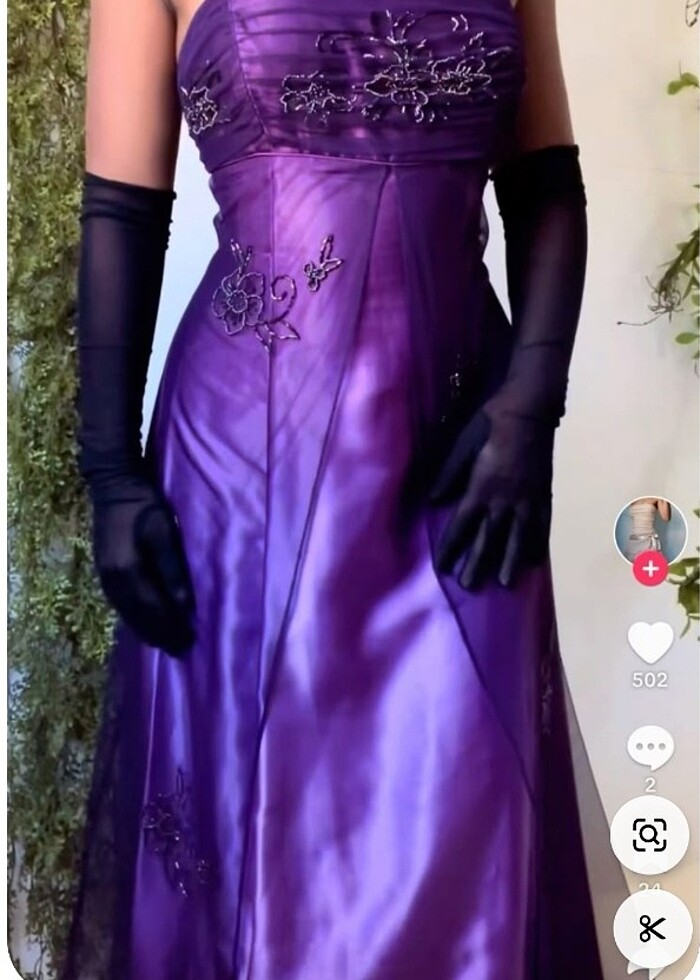 Mor saten davet elbisesi