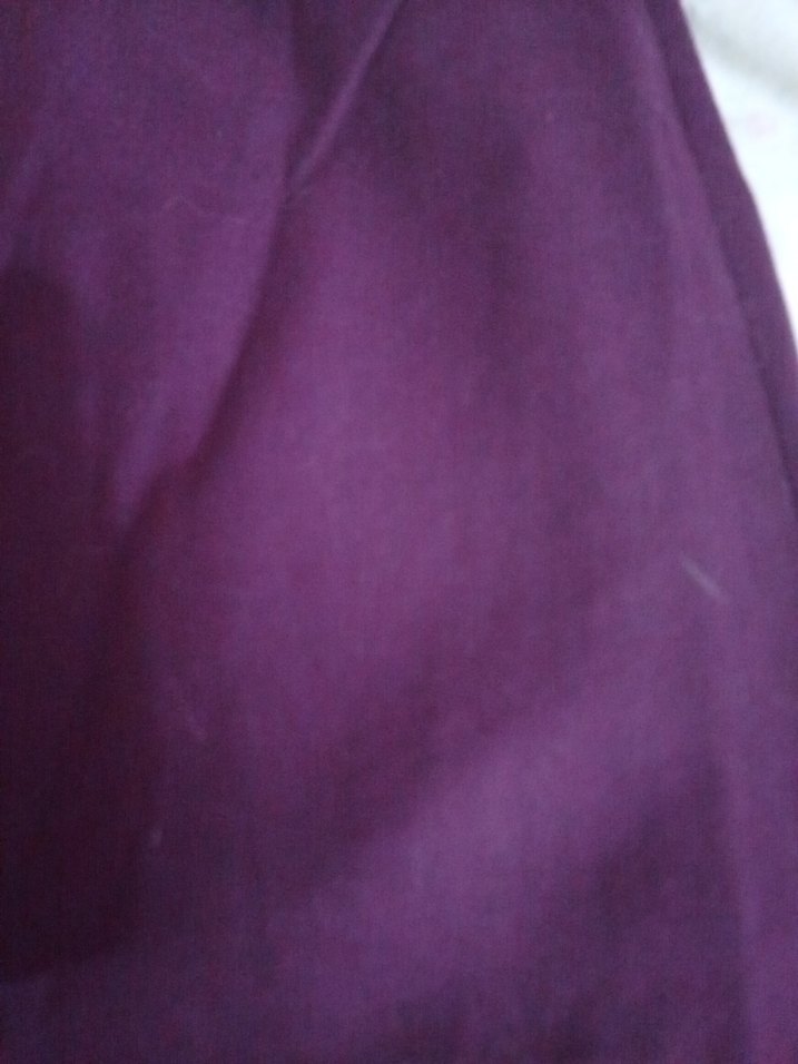 Bu mor saten hamile midi etek, drapeli tasarımı ve parlak dokusuyla minimalist ve şık bir görünüm sunar.
