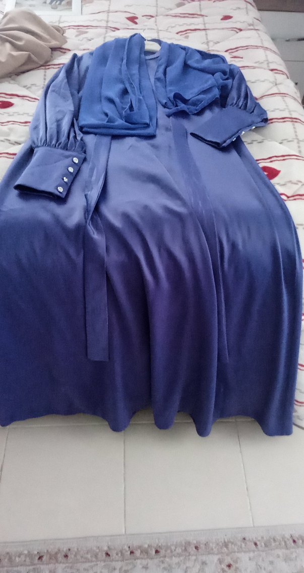 Mor saten kumaştan, uzun ve bol kesim kadın elbisesi. Drapeli tasarım, uzun kollu ve kesik yaka ile bohem tarzda, ofis için uygun. ✨ belden bağlamalı dir şalı dahildir.38-42 beden aralığına rahat olur
