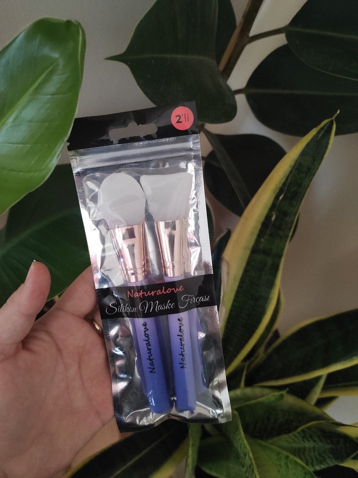 İki adet mor saplı, silikon başlıklı maske fırçası seti, pürüzsüz uygulama sağlar. marka temsili