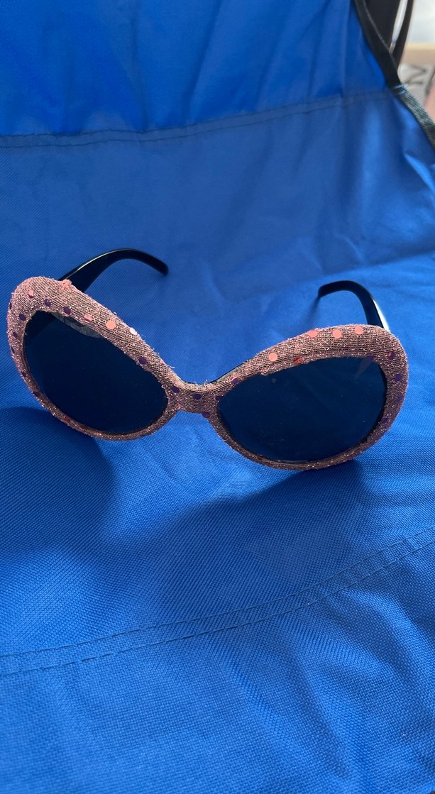 Mor simli çerçeveli, koyu renk camlı retro kedi gözü şekline sahip parti gözlüğü.