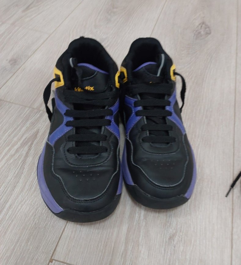 Mor ve siyah renklerde, kauçuk tabanlı bağcıklı basketbol ayakkabısı. Spor ve günlük şıklık için uygun, rahat bir tasarıma sahiptir.