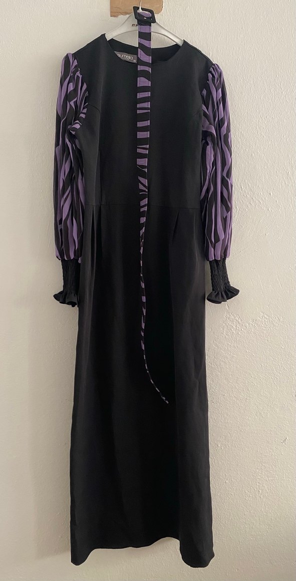 Mor Siyah Uzun Elbise