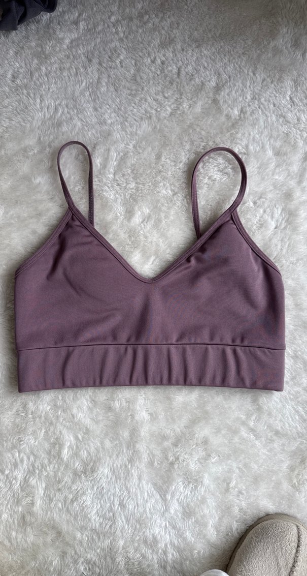 Mor renkte, ince askılı spor sütyeni. Sokak tarzına uygun, desensiz ve rahat bir yapıya sahiptir. ️♀️